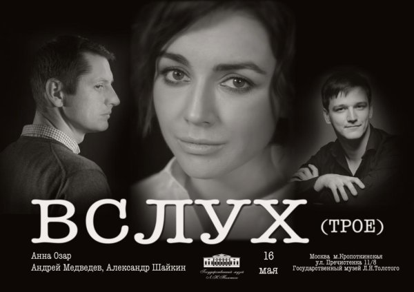 Внимание! Мероприятие переносится с 16 мая на 27 июня. Билеты, приобретенные на 16 мая, действительны.27 июня (четверг), 19:00 Государственный музей Л.Н. Толстого (ГМТ). Литературная экспозиция на Пречистенке Москва, ул. Пречистенка, д. 11/8 (м. «Кропоткинская»)Стоимость билетов: 1000 руб. Цикл «Литературная гостиная» Творческий вечер поэтов Анна Озар Андрей Медведев Александр Шайкин