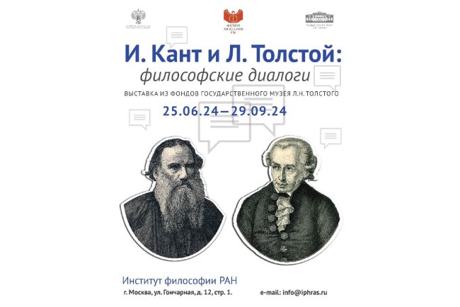 19 июня 2024 г. Во вторник, 25 июня, в 15.00 в Институте философии РАН (ул. Гончарная, д. 12, строение 1, холл-гостиная на 2-ом этаже) состоится открытие выставки «И. Кант и Л. Толстой: философские диалоги». Во время открытия выставки врио директора Института философии РАН Гусейнов А.А. и генеральный директор Государственного музея Л.Н. Толстого Архангелов С.А. подпишут соглашение о сотрудничестве…