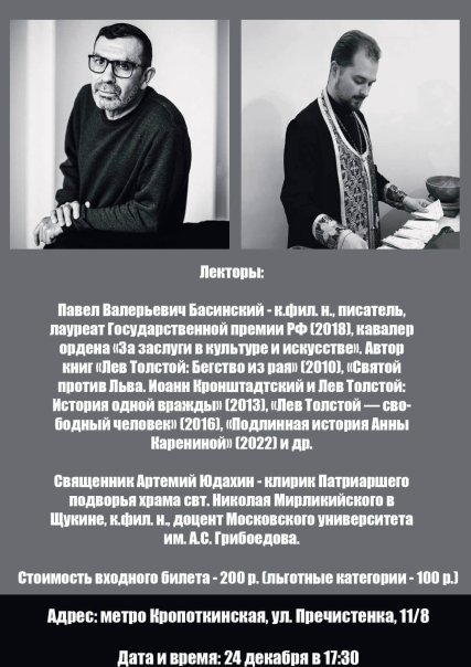 Приглашаем на лекцию-дискуссию «Лев Толстой и о. Иоанн Кронштадтский»