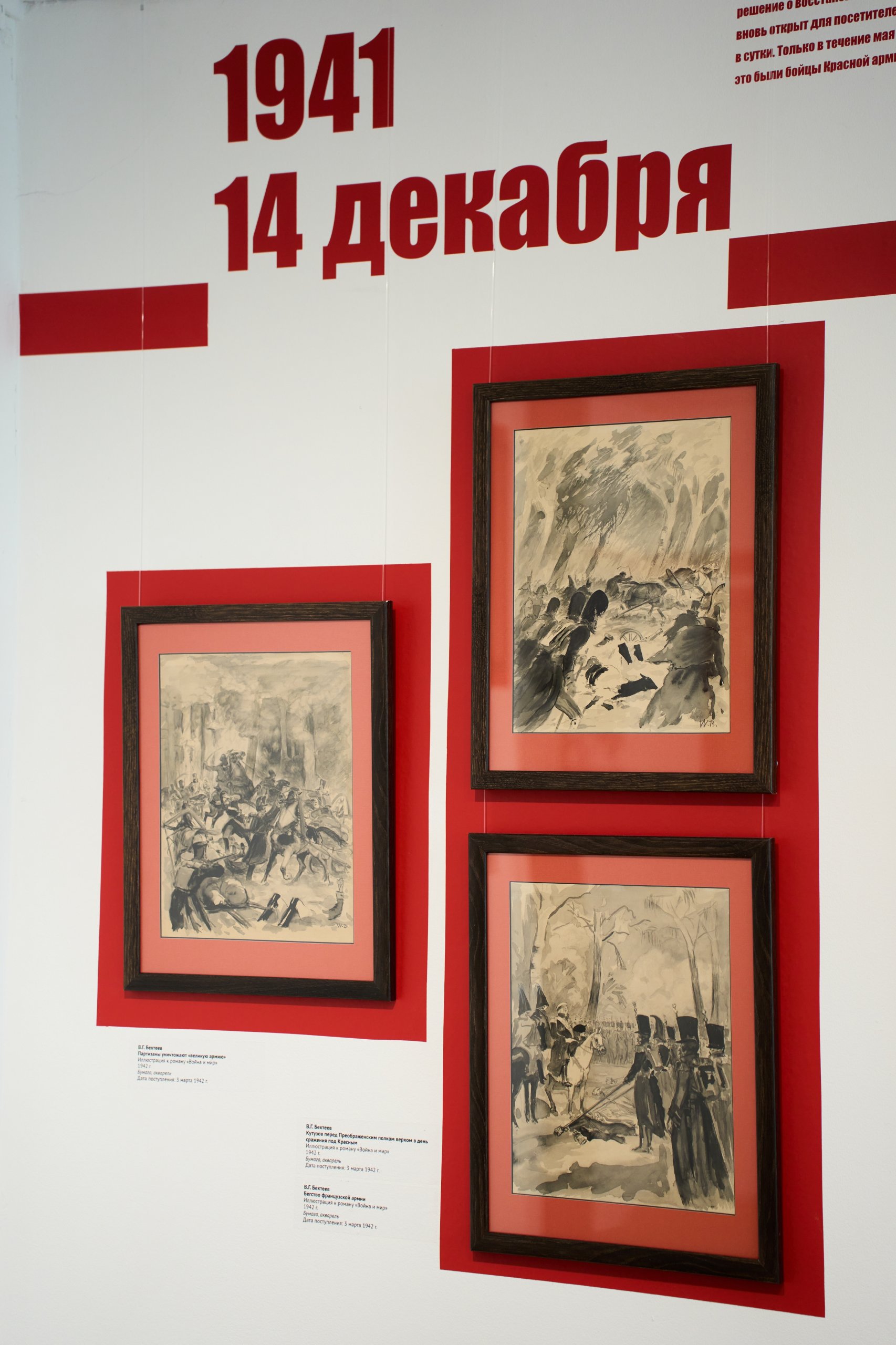 Экспозиция занимает все залы музея Льва Толстого. Важную роль в ней играет мультимедийная инсталляция в память о выставке, отправленной музеем Льва Толстого в Краматорск 18 июня 1941 года и разрушенной бомбой. Отдельный зал посвящен личности Софьи Толстой-Есениной, внучке Льва Толстого и жене Сергея Есенина, во время войны возглавившей толстовские музеи в Москве и Ясной Поляне. «25 апреля исполняется 125 лет со дня рождения Софьи Толстой-Есениной. Она — ровесница века. На ее долю выпало множество испытаний и много ярких моментов, озарений, творческих и человеческих открытий», — обратился к присутствующим генеральный директор Государственного музея Л.Н. Толстого Владимир Толстой.
