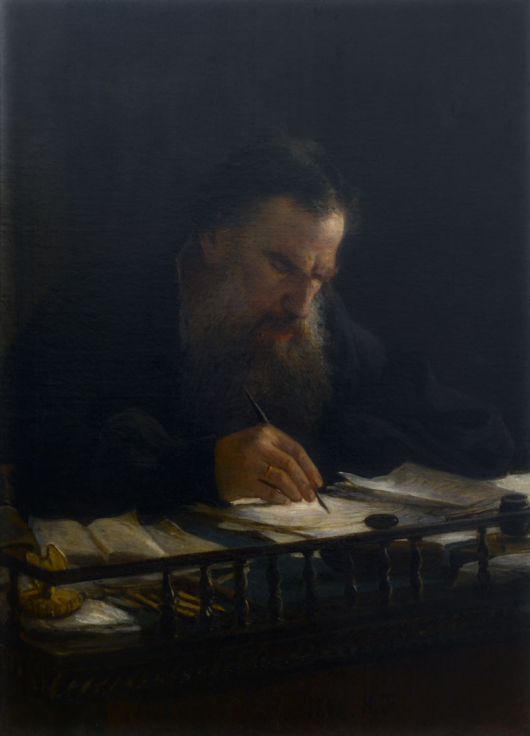 Выставка рассказывает об отношениях великого писателя, педагога, философа Льва Николаевича Толстого с известными художниками и скульпторами, и показывает его образ, запечатленный мастерами. Л.Н. Толстой не любил позировать ни художникам, ни скульпторам, ни фотографам. Тем не менее, в 1873 году Иван Крамской создал первый портрет писателя. Его копия, написанная любимым художником Толстого – Николаем Орловым, открывает выставку.