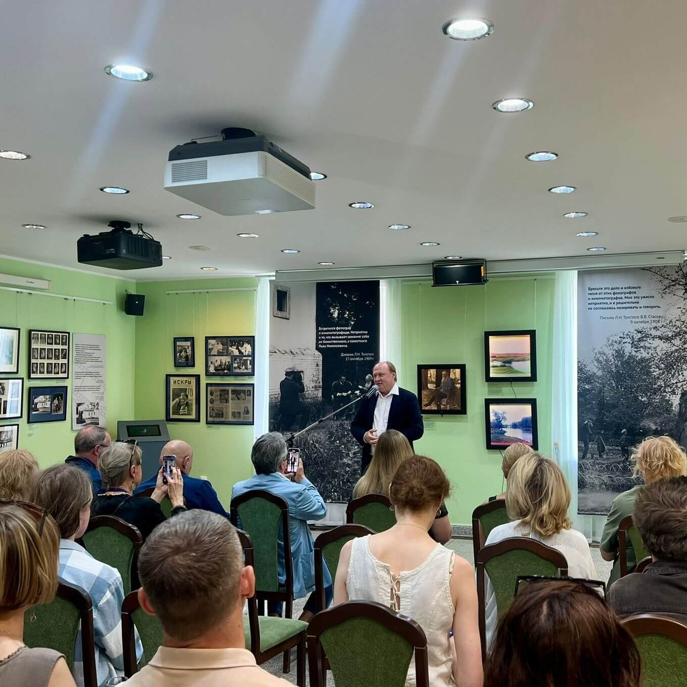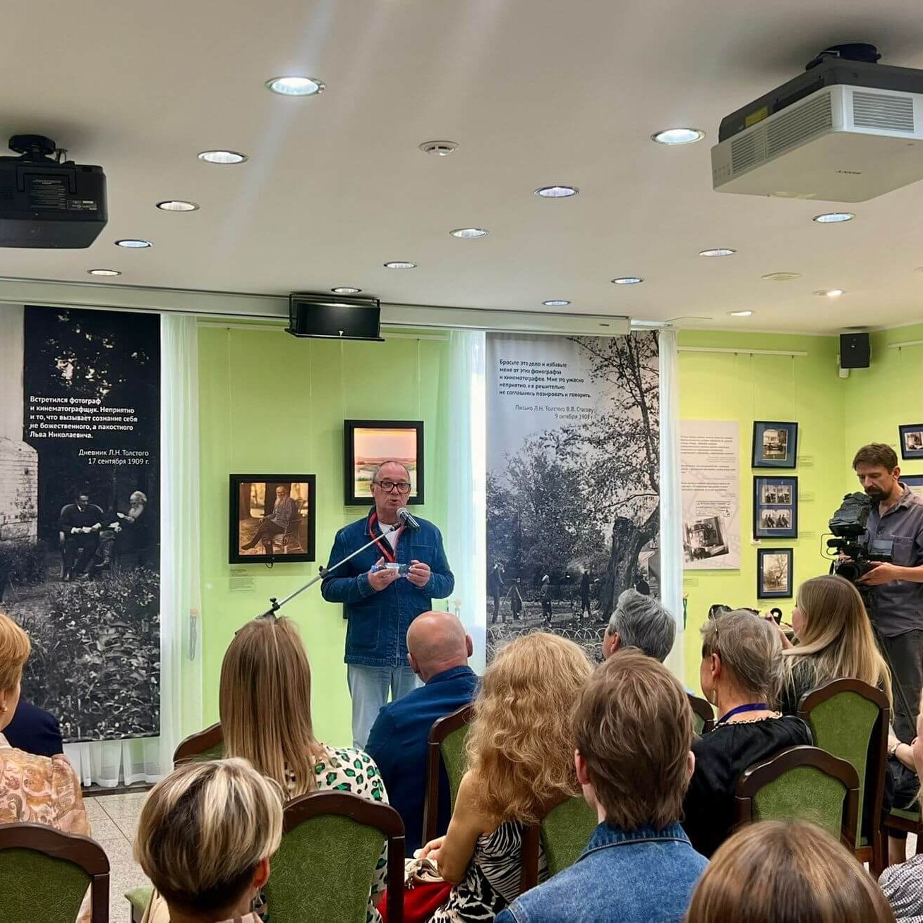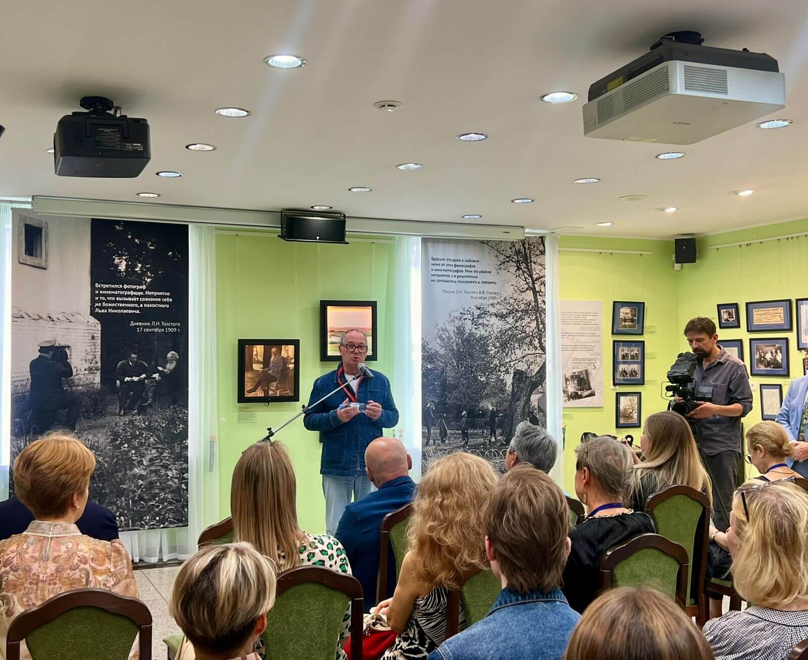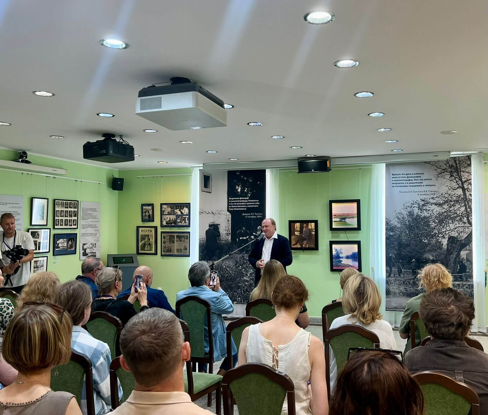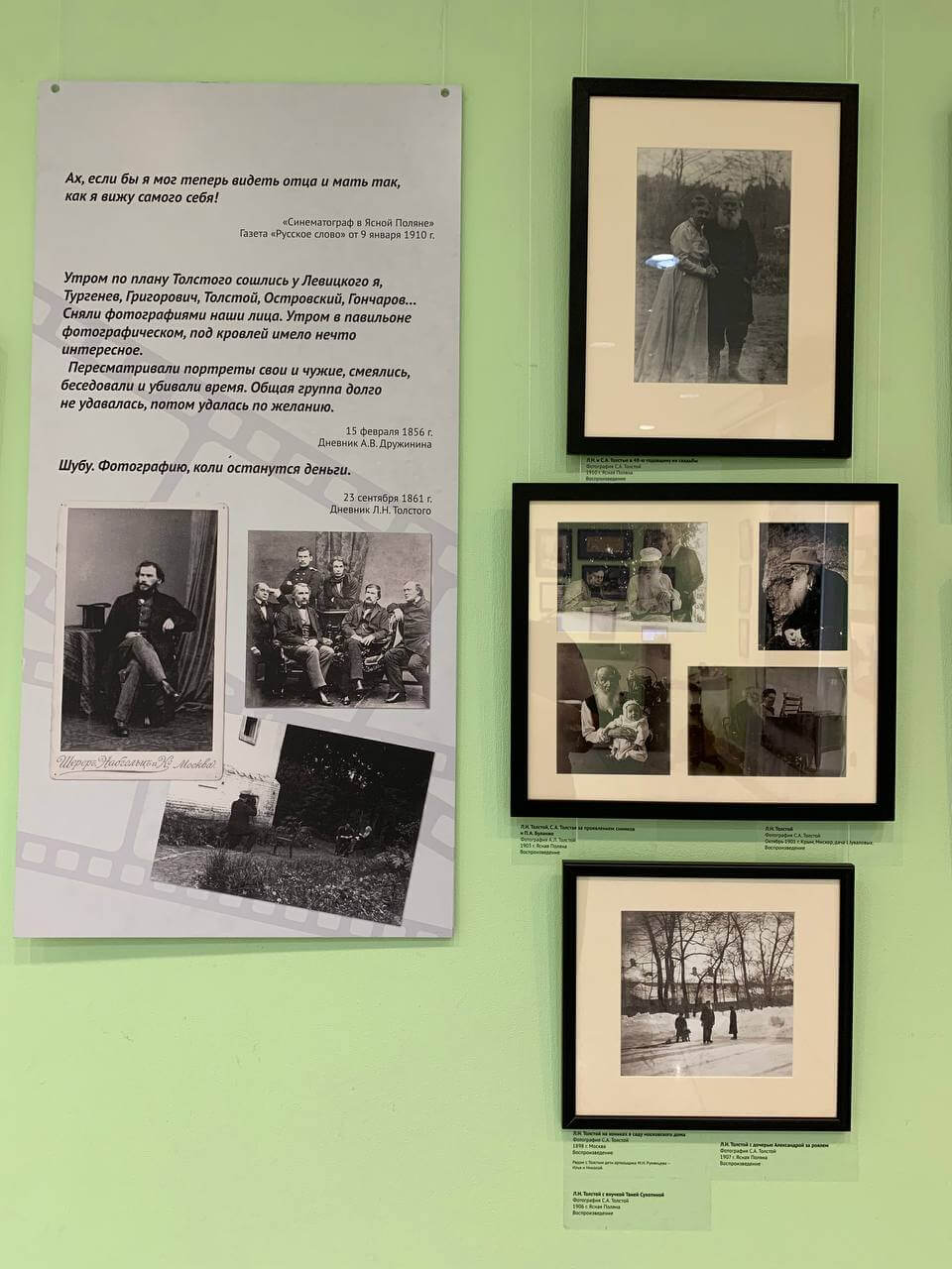 Экспозицию открывал праправнук Льва Толстого, генеральный директор Государственного музея Л.Н. Толстого, Владимир Ильич Толстой. По его словам, Лев Николаевич сопротивлялся наступлению кинематографа и на многочисленные попытки запечатлеть себя на пленку говорил: «Бросьте это дело и избавьте меня от этих фонографов и кинематографов. Мне это ужасно неприятно, и я решительно не соглашаюсь позировать и говорить».