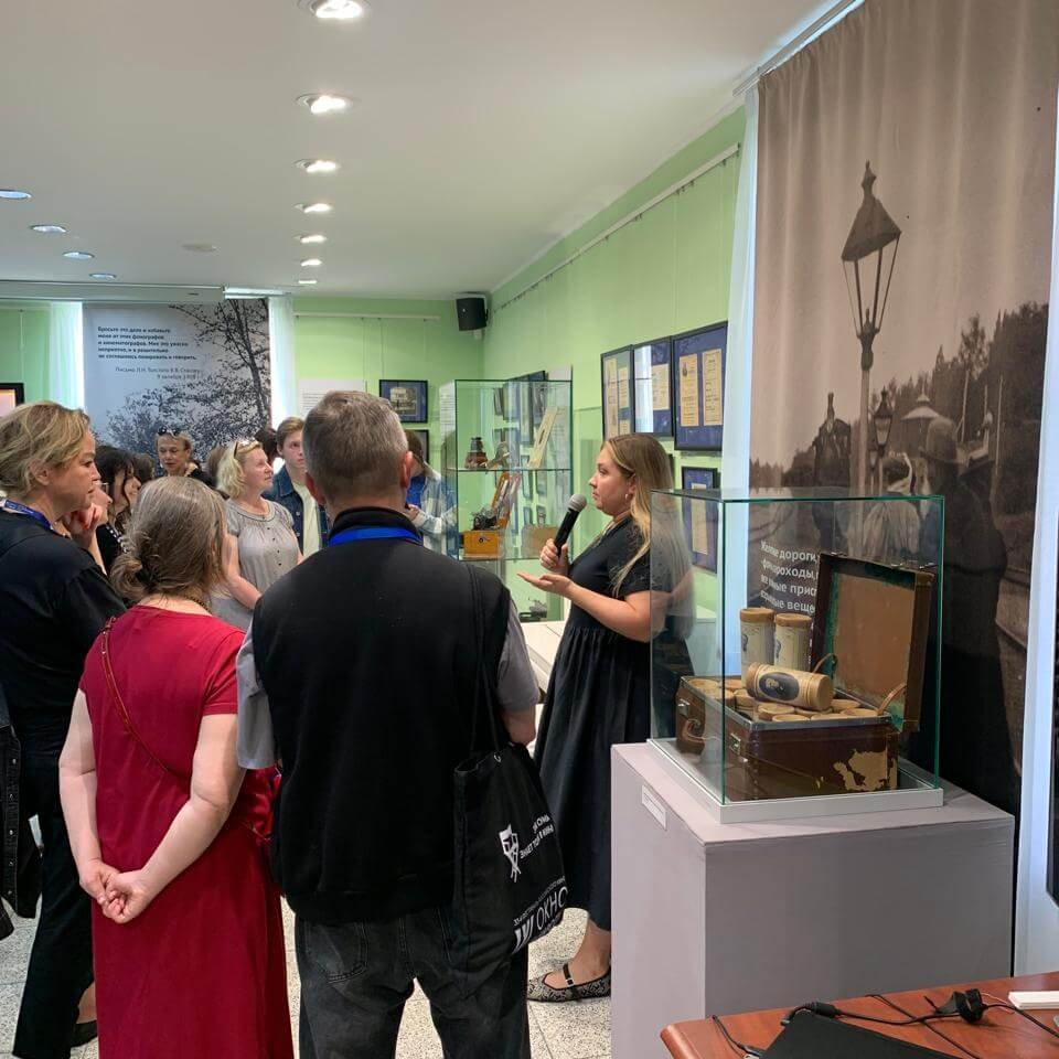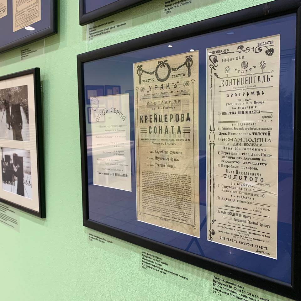 На открытии выставки была показана кинохроника 1908-1910 гг. с Толстым, которую озвучил на фортепиано пианист, сотрудник музея Дмитрий Семин. В ходе просмотра куратор выставки Олеся Волосевич зачитывала газетные статьи начала XX в. об отношении Толстого к кинематографу.