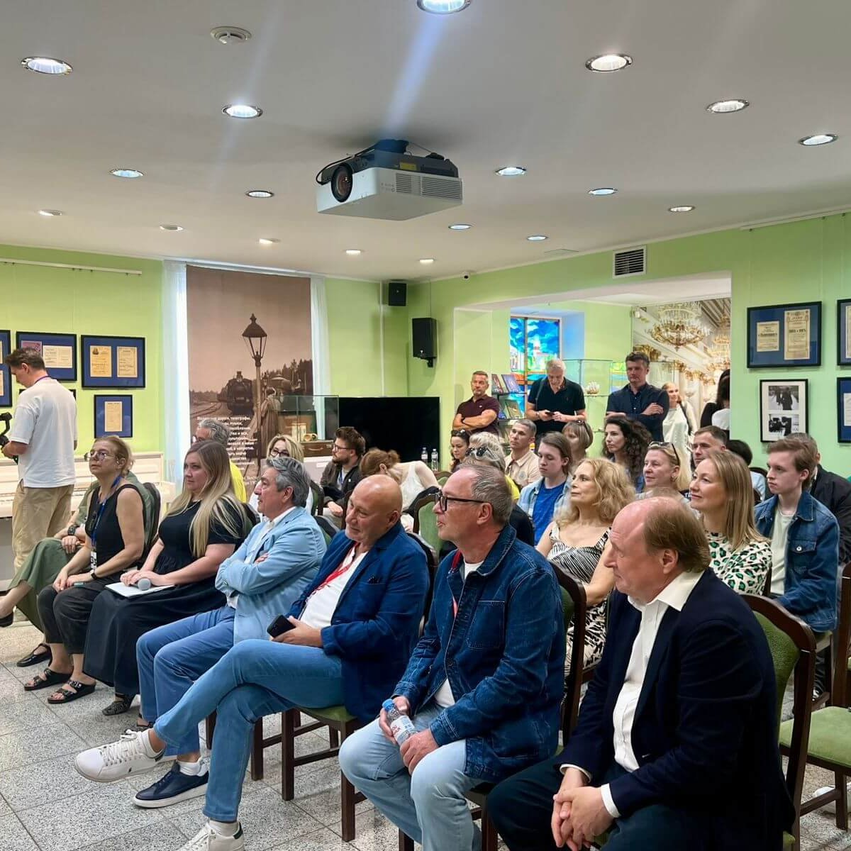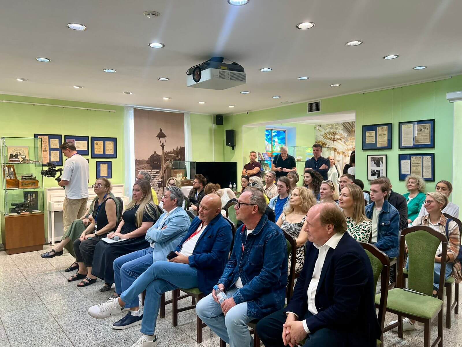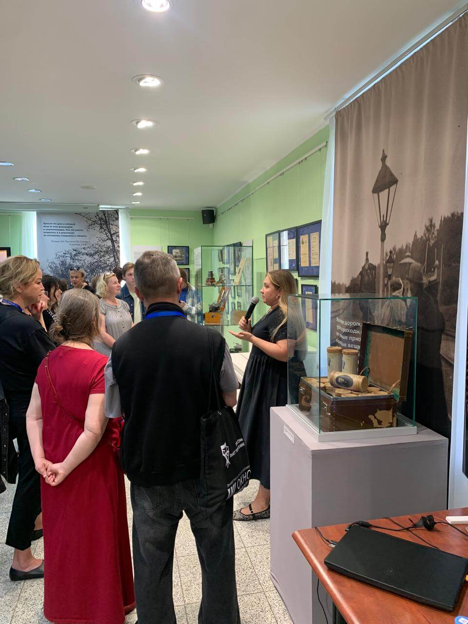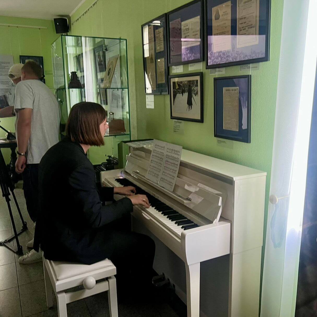 — Нам хотелось показать киносеанс времен Толстого, — рассказывает куратор выставки, старший научный сотрудник государственного музея Л.Н. Толстого Олеся Волосевич. — Кинотеатры начала ХХ века работали в сопровождении живой музыки. Там играли струнные оркестры, таперы, именно поэтому у нас на открытии за роялем Дмитрий Семин, специалист концертного отдела музея. Мы подбирали музыку, которая соответствует каждому тематическому фрагменту, она не случайна.