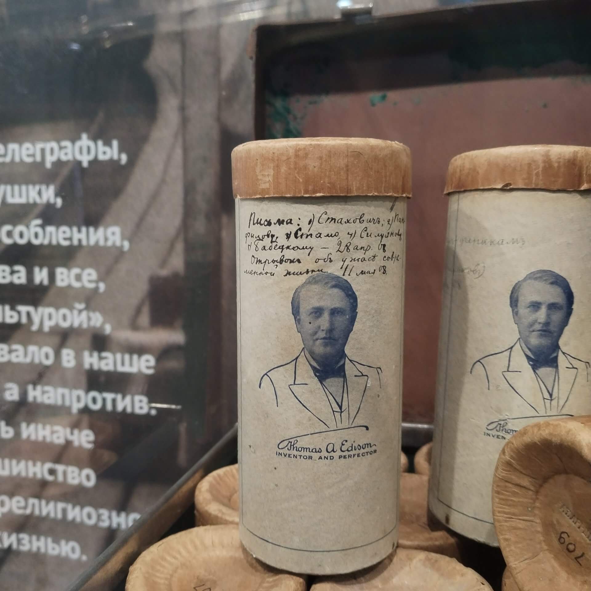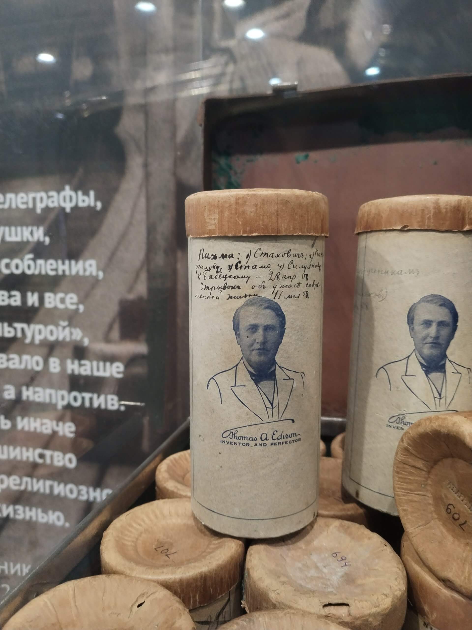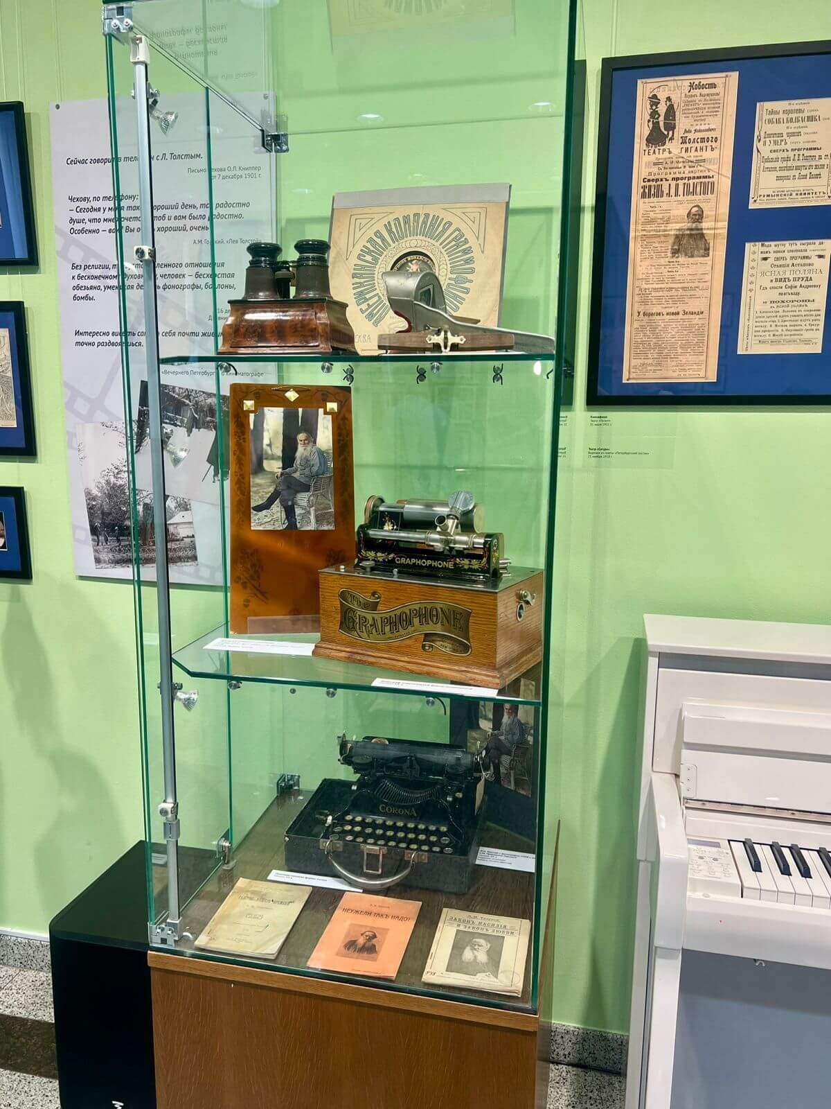 Благодаря фонографу, который был прислан Льву Николаевичу Томасом Эдисоном, мы можем послушать запись голоса писателя. На выставке представлен американский образец фонографа начала ХХ века.