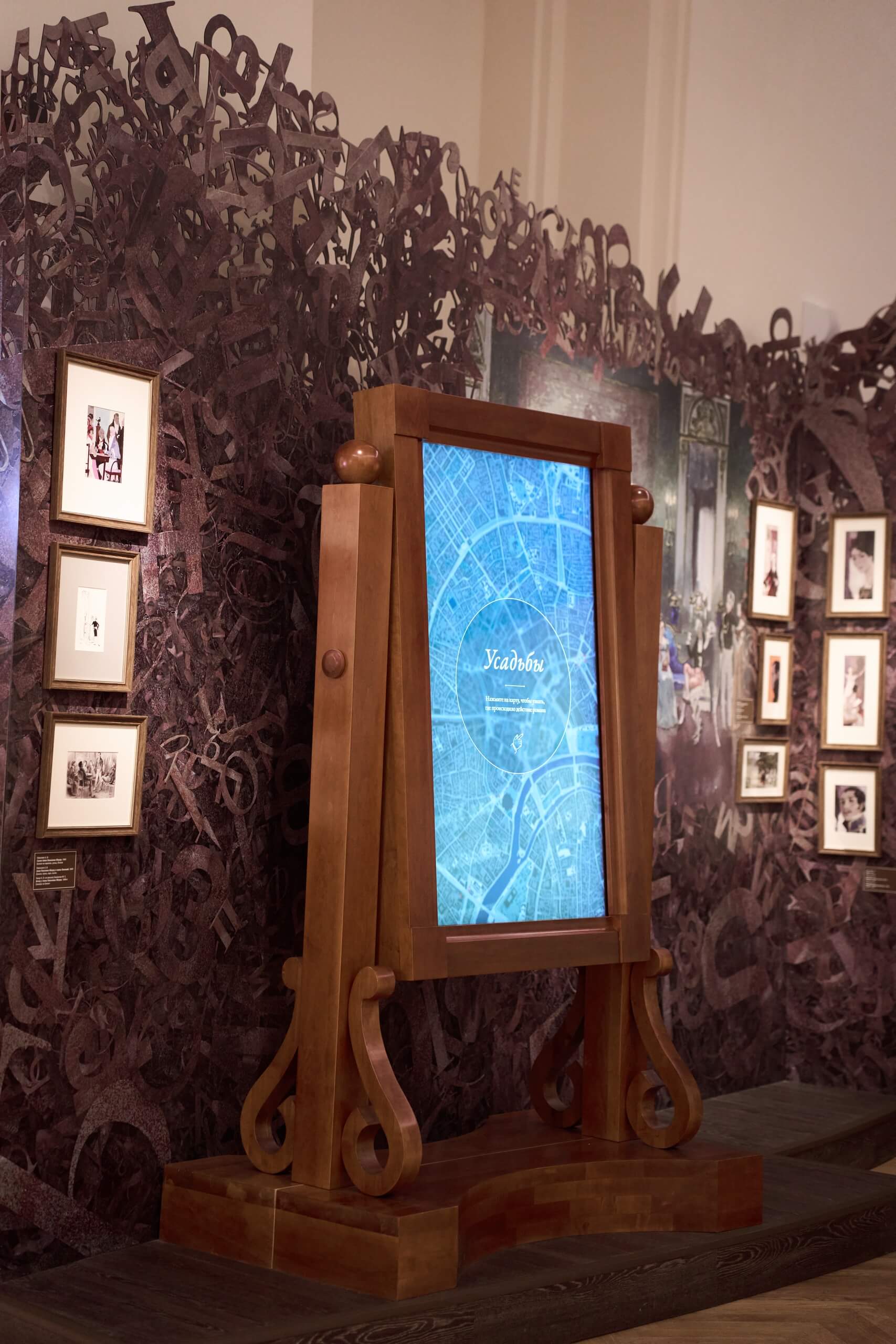 Ключевые моменты истории и главные герои романа оживают с помощью использованных в организации выставочного пространства мультимедийных технологий. У посетителей будет возможность разучить танцевальные движения, повторяя их за парой на большом экране, и поиграть в старинные карточные игры. Перейдя в зал, посвященный военной теме романа, гости выставки смогут проследить на интерактивных картах за ходом Бородинского сражения и ответить на вопросы о полководцах Кутузове и Наполеоне.