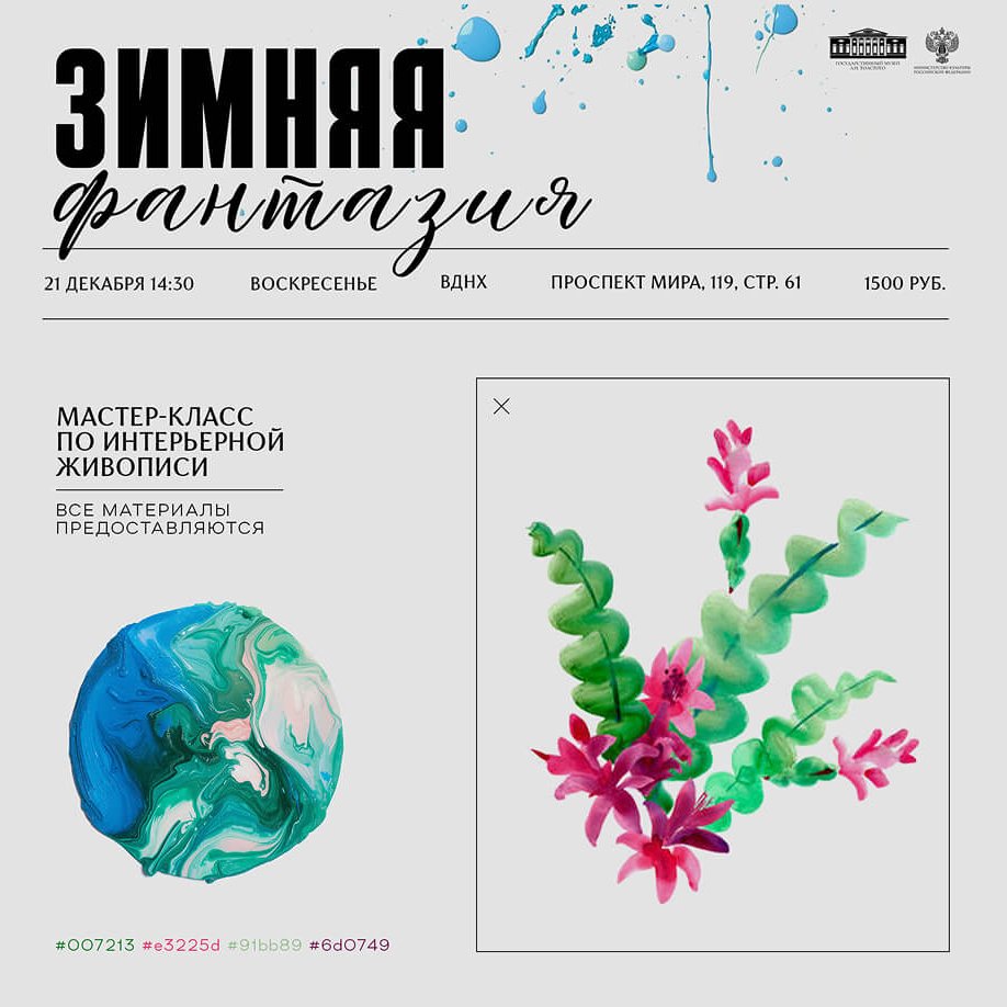 Опытный преподаватель откроет вам секреты создания красивой картины без опыта и специальных навыков. Всего за пару часов вы станете автором настоящего произведения искусства – идеальной зимней фантазии.