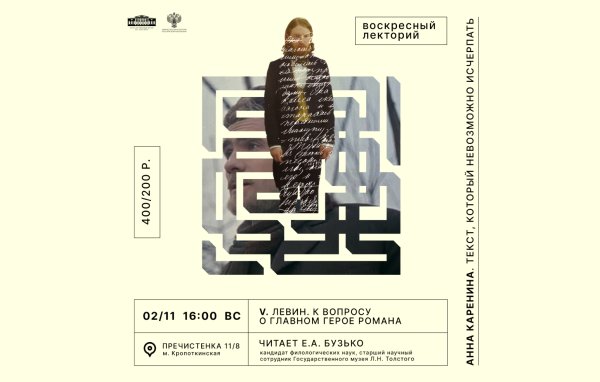 2 ноября (воскресенье), 14:30 Государственный музей Л.Н. Толстого (ул. Пречистенка, 11/8)Купить билеты Лекция посвящена Константину Левину, герою, которому автор «Анны Карениной» отводит более половины своего романа. Образ Левина — важнейший инструмент выражения мысли самого Толстого, поскольку в нем содержится глубокое художественное и философское исследование жизни, поиск ее смысла. Левин не идеален, но многогранен и неисчерпаем.…