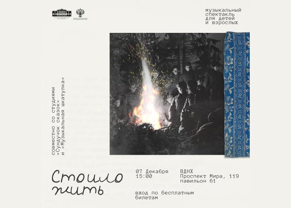 7 декабря (воскресенье), 15:00 ВДНХ, павильон № 61 (Проспект Мира, 119, стр. 61)Получить билет Приглашаем на музыкальный спектакль для детей и взрослых, где переплетаются прошлое и настоящее. Театрально-музыкальная композиция «Стоило жить» – дань памяти героям, павшим в Великую Отечественную войну. По сюжету спектакля современные школьники готовят книгу, собирают фронтовые фотографии и неожиданно фантастическим образом попадают…