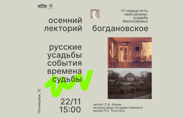 Лекция «У сердца есть свои резоны: усадьба Философовых «Богдановское» из цикла осеннего лектория «Русские усадьбы. События. Времена. Судьбы»