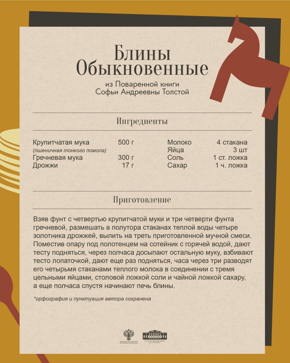 Масленица была важной частью усадебной жизни, временем встреч, общения и простых радостей. В этот день мы попробуем воссоздать атмосферу живого, тёплого праздника, каким его могли видеть современники Льва Николаевича.