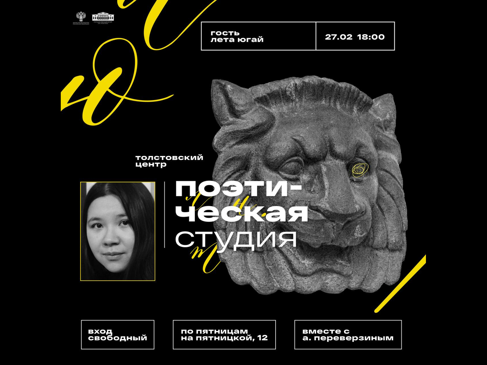 Формат поэтического семинара — это настоящая творческая лаборатория. Студийцы представляют свои стихи товарищам по перу — получают бесценный опыт и важные комментарии. Стать участником студии может каждый, вне зависимости от возраста и профессионального опыта.