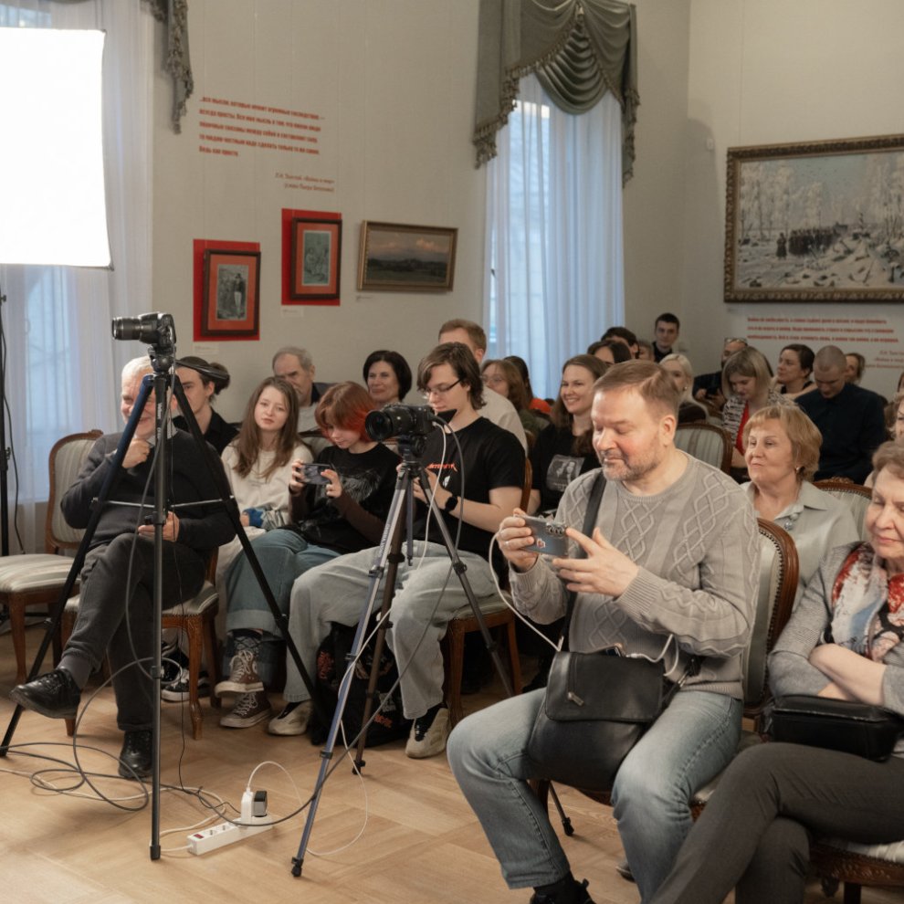 В Ампирном зале Музея Толстого, среди прочих — студенты Сергея Шаргунова. И у них свои мысли и интерпретации. Юзефовичу любопытно, но комментариям об отдельных словах он сопротивляется: интереснее Леониду Абрамовичу мировоззренческие, сущностные вопросы. Шаргунов видит в рассказе притчевое начало, находя в героях Мытаря и Фарисея. Судя по всему, автором это не заложено — но выслушано с интересом.