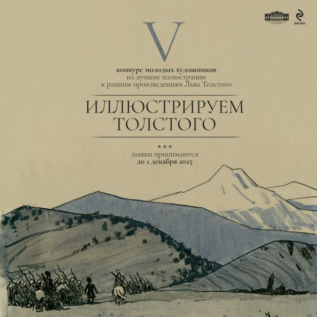 Дорогие друзья! Государственный музей Л.Н.Толстого объявляет юбилейный V конкурс молодых художников «Иллюстрируем Толстого» на лучшие иллюстрации к  ранним произведениям Льва Толстого. Для участия в конкурсе необходимо заполнить анкету — заявку на сайте музея. Заявки принимаются до 1 декабря 2025 года. Участники конкурса получают право на бесплатное  посещение музея, выставок, пленэров, тематических встреч, лекций, экскурсий. Все…