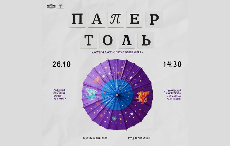 26 октября (воскресенье), 14:30 ВДНХ, павильон № 61 (Проспект Мира, 119, стр. 61)Купить билет Приглашаем на мастер-класс с мастерской «Бумажная фантазия», где вы создадите объемную открытку «Зонтик волшебника». Папертоль — это особая техника бумажного 3D-коллажа, пришедшая из Франции. Несколько одинаковых изображений вырезаются, собираются по слоям и «приподнимаются» с помощью клея и специальных подложек — так создаётся…