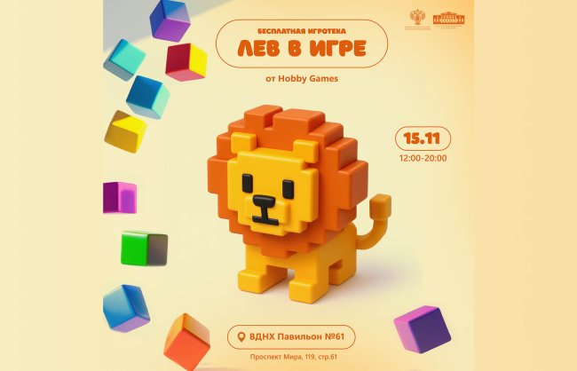 15 ноября (суббота), 12:00 ВДНХ, павильон № 61 (Проспект Мира, 119, стр. 61)Получить билет Лев в игре: настольные игры на ВДНХ Любите соревноваться, разгадывать головоломки или искать сокровища в подземельях? Приходите на игротеку «Лев в игре» — вечер настольных приключений для детей и взрослых. Вас ждут интеллектуальные дуэли, приключения, игры на скорость, логику, смекалку и командную работу.…