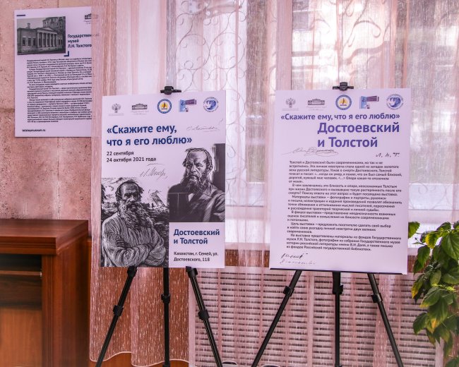С 22 сентября по 24 октября 2021 г. Литературно-мемориальный музей Ф.М. Достоевского г. Семей Толстой и Достоевский были современниками, но так и не встретились. Эта личная невстреча стала одной из загадок золотого века русской литературы. Узнав о смерти Достоевского, Толстой плакал и писал: «…когда он умер, я понял, что он был самый близкий, дорогой, нужный…