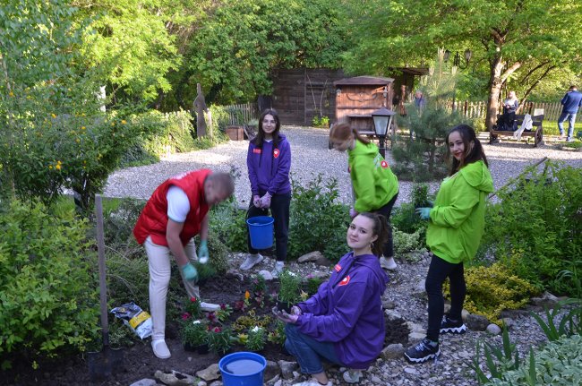 Накануне Всероссийской акции «Ночь музеев» волонтеры высадили цветы на клумбах Культурного центра им. Л.Н. Толстого в Железноводске.